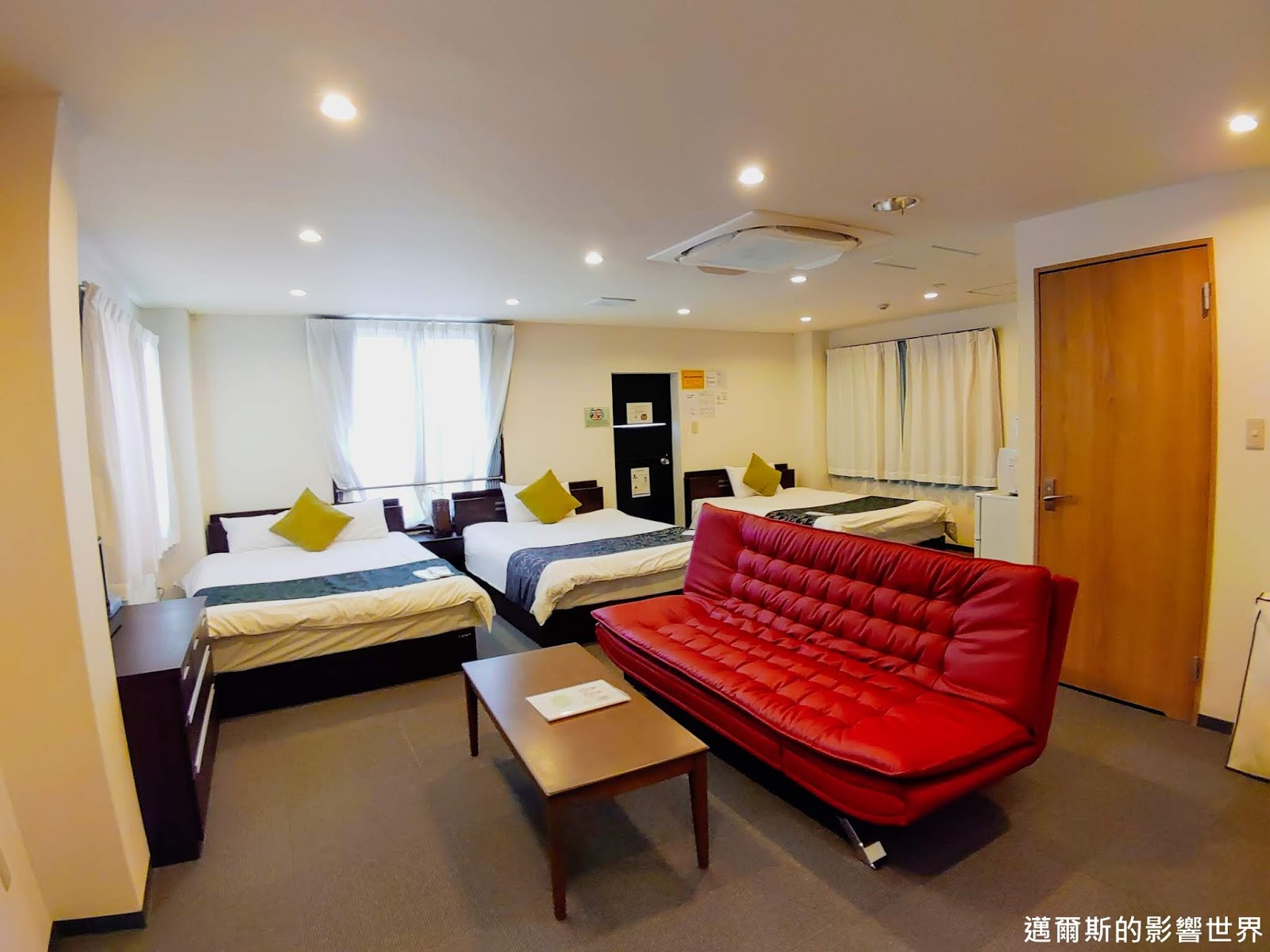 包含三張雙人床、一張沙發床