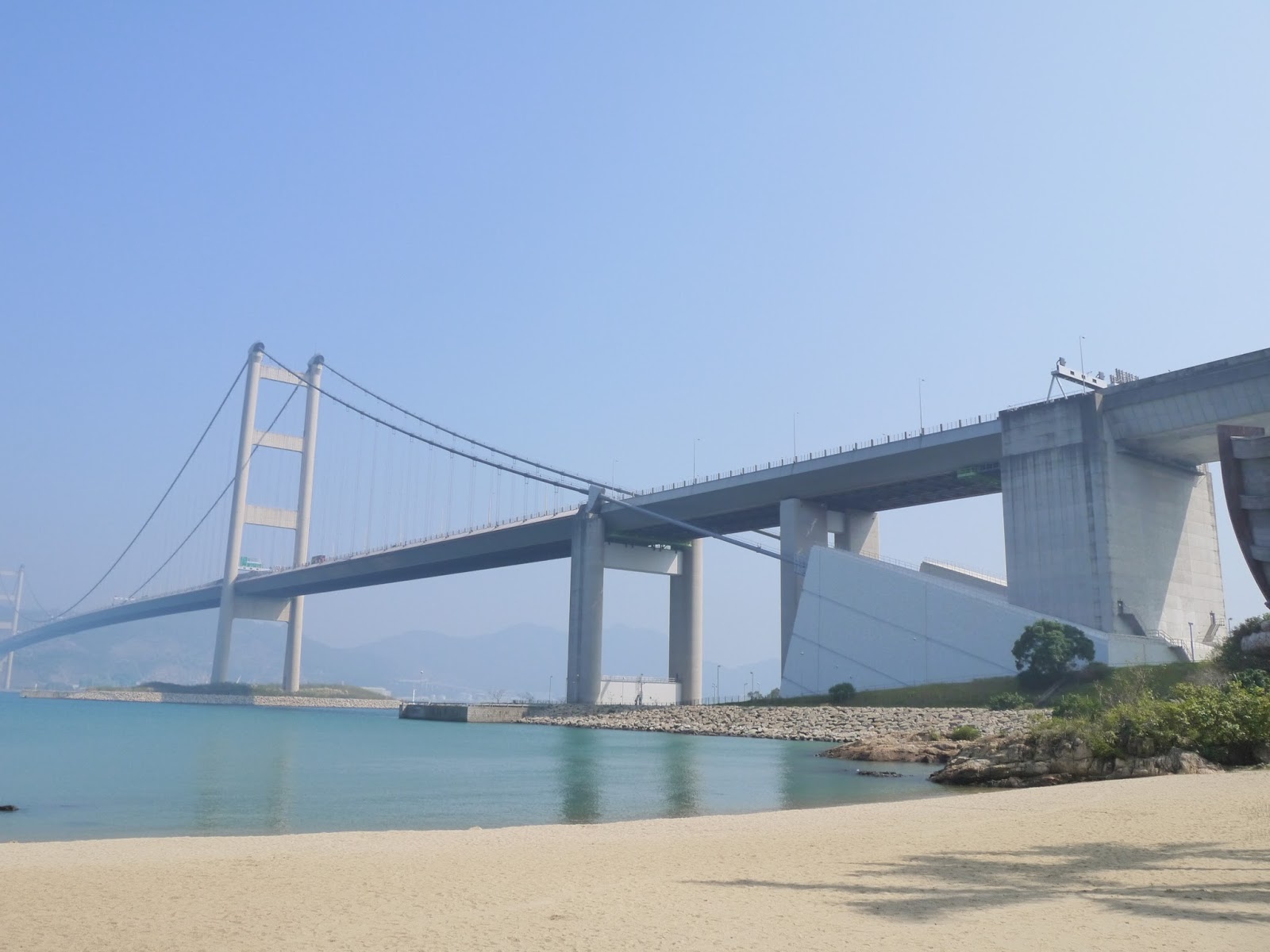 離開園區後,回到當初下車的珀麗灣海濱廣場,到沙灘上好好休息欣賞雄偉的青馬大橋和廣闊的海景吧!