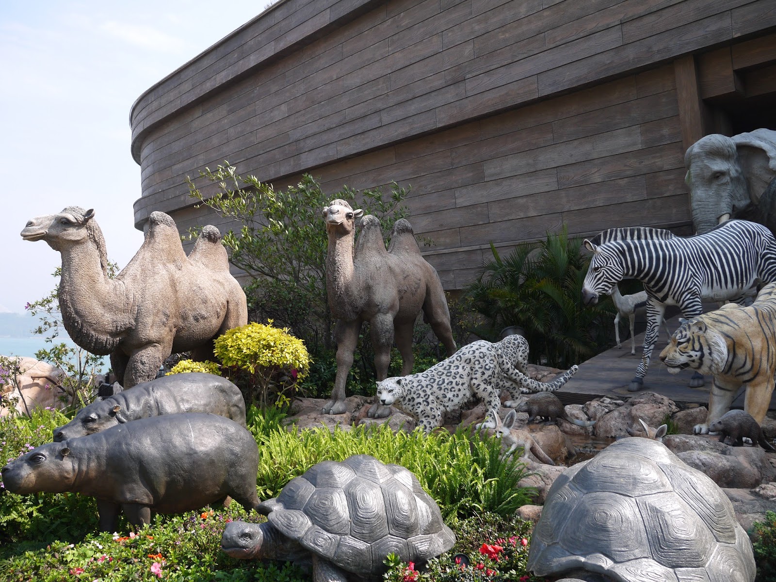 簡單參觀完探索館後,我們到方舟旁的花園,這裡有67隊的動物雕像