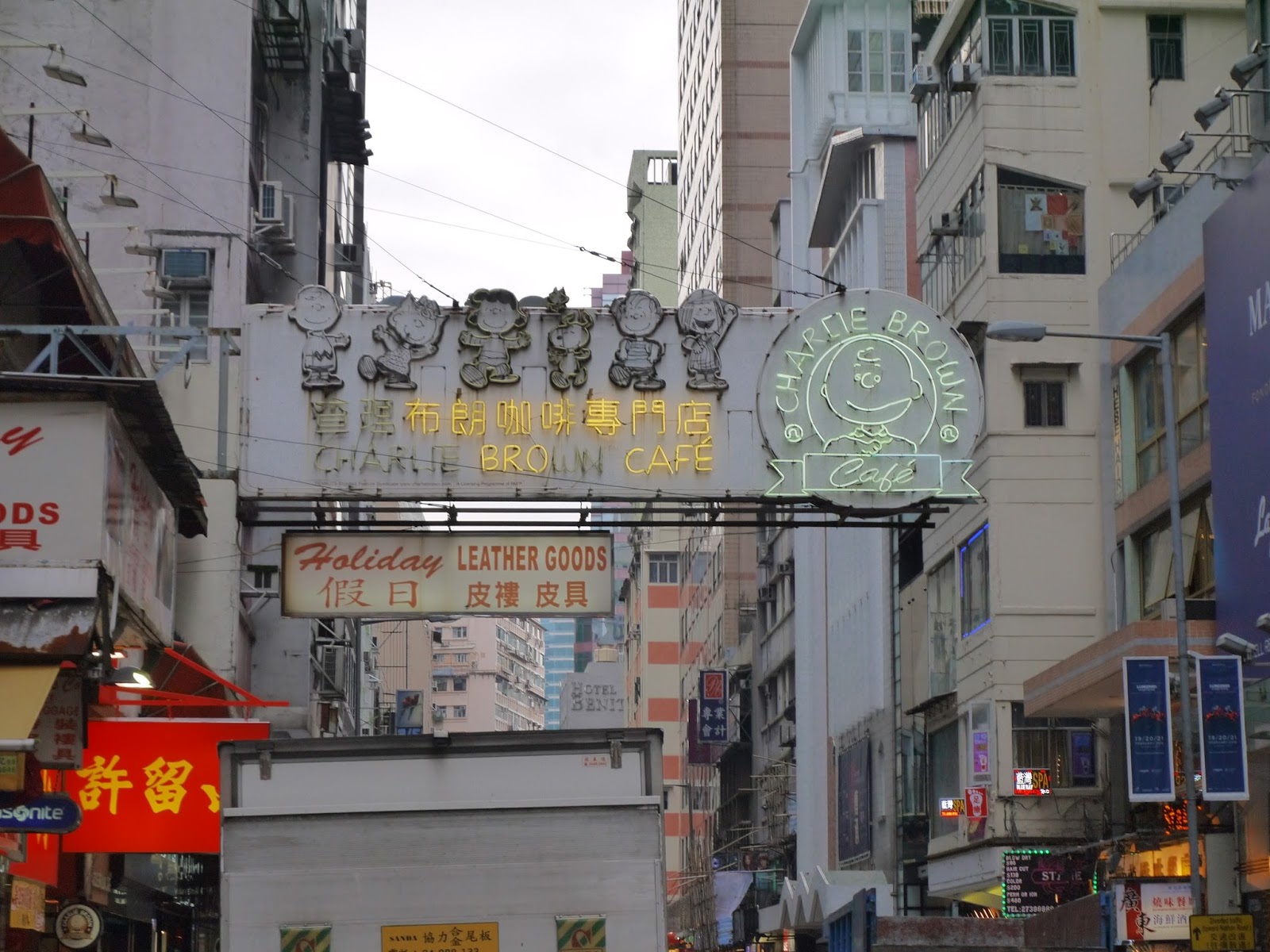查理布朗咖啡專門店在尖東廣場附近,尖沙咀金馬倫道裡,在街口就可以看到大大的招牌